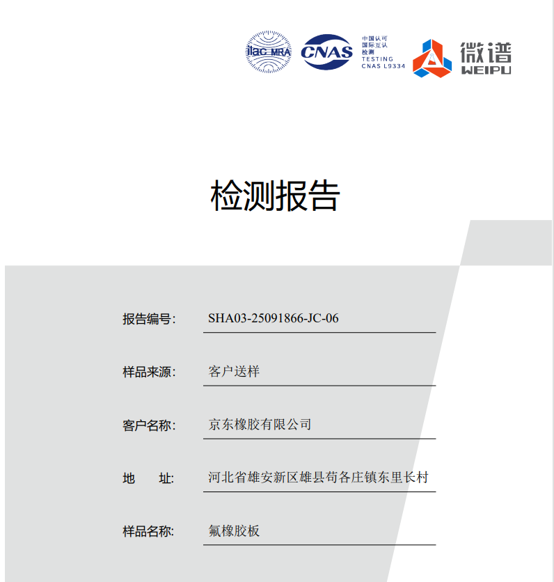 京東橡膠氟橡膠板檢測報告