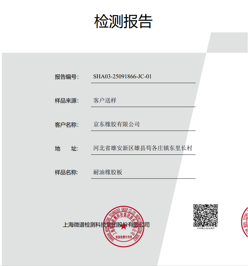 京東橡膠耐油橡膠板檢測報告