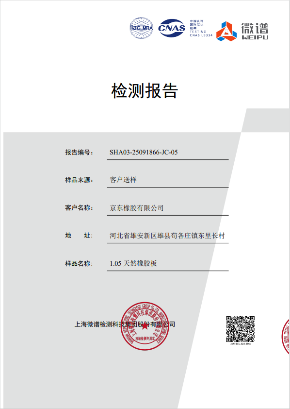 京東橡膠天然橡膠板檢測報告